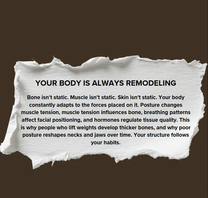 Your face isn’t something you’re stuck with — it’s something your body expresses. Bone density, muscle tone, skin quality, posture, fat distribution, and symmetry are all outputs of internal systems working together to shape how you look. Looks maxing isn’t cosmetic. It’s biological optimization.